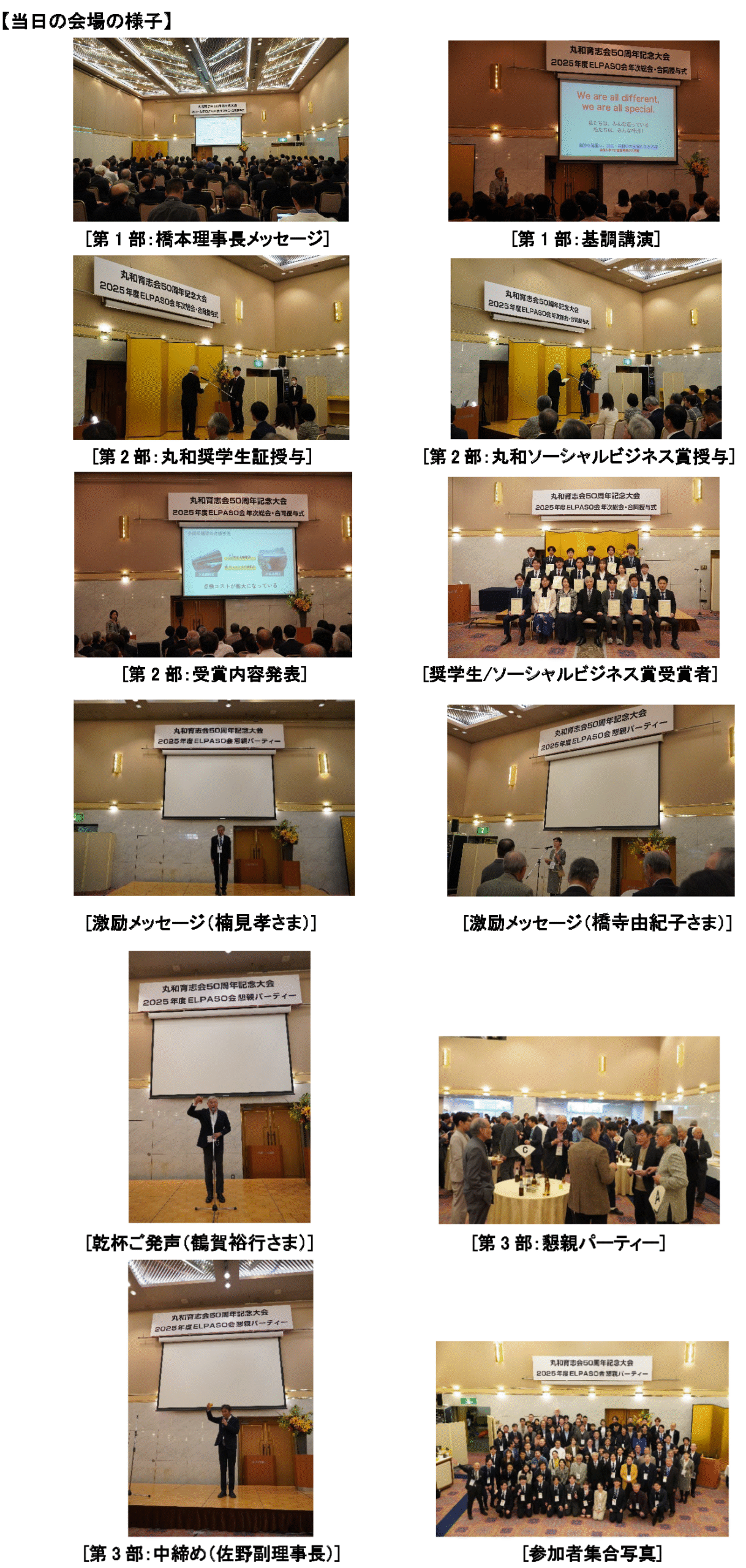 去る11月24日(祝)、アルカディア市ヶ谷 私学会館にて「丸和育志会50周年記念大会(2025年度ELPASO会年次総会・合同授与式)」を開催し、160名の皆さまにご参加いただきました。